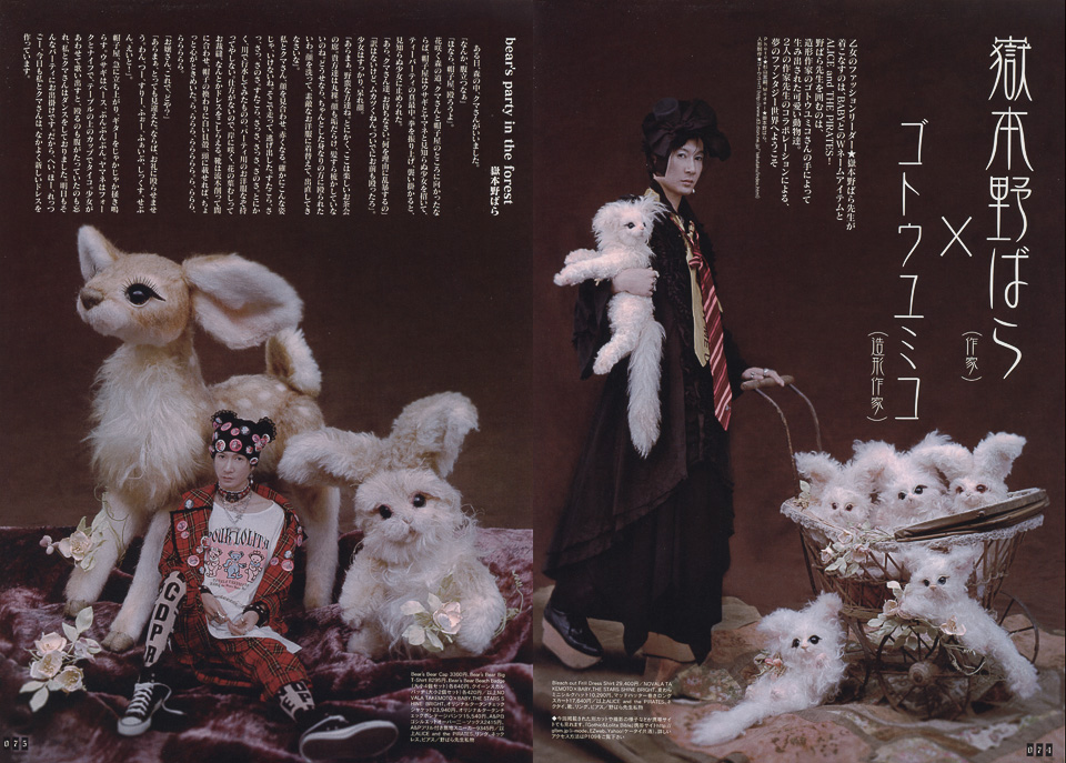 嶽本 들장미 X 고토우유미코 2007.07.19 들장미 씨와 조형 작가의 고토우유미코 씨의 손에 의해 만들어진 귀여운 동물 인형들을 스기야마가 판타지 세계에 가두 었습니다。어떤 걸까 ~? 보기는 백문이 불여일견。 고토우유미코 씨 HP