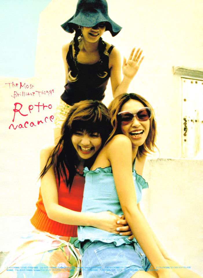 最近の天気の悪さには、ほとほと困惑しています。夏のバカンスをテーマに水着などの撮影をしなければならないのに、今にも雨が降りそうな天気です。ストレートな写真が好きな杉山ですが、こんな時はコンピューターに頼ることになってしまいます。pero、ただ単に青空を合成したのでは妙な写真になってしまうので、ここまできたらイラストのような写真にしてしまえということで、こんな写真にしました。あとは雑誌に掲載されたときにデザイナーに書き文字のようなタイトルを入れてもらい、明るさとカワイさをプラスしてもらいます。まだまだ寒い曇り空の下、モデル達の楽しそうな笑顔と動きが重要になってきます。