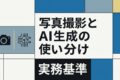 ビジュアル・写真制作でAIを使ってよい領域・使わない領域画像生成AIが急速に広がり、ビジュアル制作の現場でも「どこまでAIを使うべきか」が大きなテーマになっています。実際の制作現場では、AIを使うか使わないかという単純な話ではありません。重...