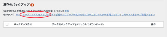- ファイル名を変えない: ダウンロードしたファイル(zip形式など)の名前は、UpdraftPlusが識別するための特別な名前になっている。名前を変更せずにそのまま保管する。ダウンロード時に解凍されてしまった場合は、ファイルをzip形式にしておく。