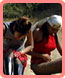 砂漠で休息? のカット。実はこの砂漠、砂漠って言うほどの大きさじゃあないけれど、写真ってウソつきだから、ちょっとした砂地が砂漠に見えたりもするんだ。今回は、なるべく荒涼とした砂漠に見えるようなところを選んで撮影。ロケの写真は、撮るカメラマンが何処を背景に選ぶかで、かなり違ったものになってくる。ファインダーから覗いた世界が写真の全てだから、写っていないそれ以外のところはどうでもいいのだ。