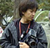 今回の撮影は、あいにくの曇り空で、洋服や動物たちを鮮明に写すためにストロボを使った。杉山の横にスタンドが立ってるけど、それがストロボ。